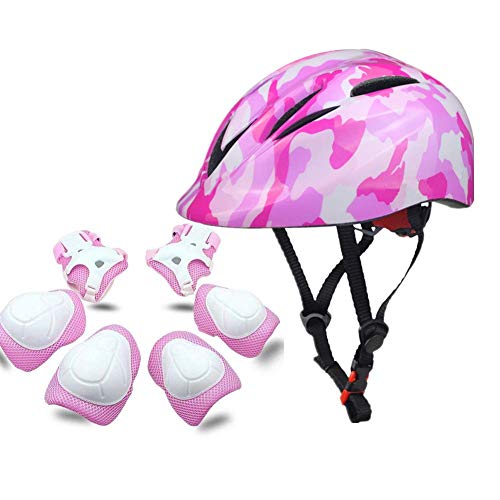 Atphfety Kids Sports Protective Gear Set, Boys Girls Cycling Helmet with Knee&Elbow Pads and Wrist Guards for Rollerblades, Scooter, Skateboard, Bicycle(3-8Years Old) (Pink)