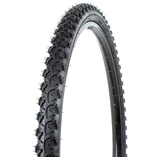 Junior mountain bike tire for aggressive riding in mud & … Seems to be made of some really sturdy material. Grips the road and sidewalk nicely. Even grips pretty good on grass when pedestrians decide I am not worthy of the sidewalk. Grips really good on turns, then again I am not going very fast or turning very sharply, but I feel like it would still grip great if I did. I am eager to see how it does during winter.It did take me a while to get it on my bike as the material it not as flexible like other tires. My hands were a bit sore…