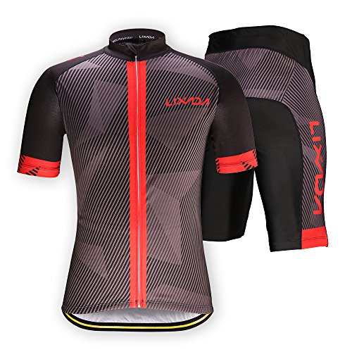 Lixada Men’s Cycling Jersey Set Bicycle Short Sleeve Set Quick-Dry Breathable Shirt+3D Cushion Shorts Padded Pants
