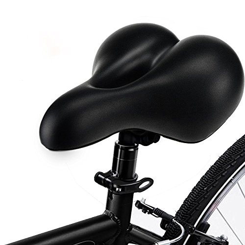 Applicable to: Most of bikes, such as mountain bike, road bike, folding bike, cruiser, road city bikes, fixed gear and touring. Perfect gift for cyclists,experience the joy of cycling. Super Ergonomic Design Middle groove is helpful to air ventilation and sweat releasing. Say goodbye with pain during the long-term riding. Thicken Widened Memory Foam Padded: Using high-density punching foam,thicker foam in sports level,Feeling more comfortable, better protect your hip, strong wear resistance and durability. Surface Uses Texture PVC Leather: Feeling soft and smooth, high-elastic, wear-resistant, scratch-resistant, can effectively expand the touching with hips and cushion. Double Spring Rubber Ball Suspension Design Dual Shock Absorbing Spring Rubber ball Designed, make it more stable, strong shock absorption effect. Specifacation: * Surface Material: PVC Leather * Dimensions: 9.8 x 9 x 3.9 inch / 25 x 23 x 10cm * Weight:720g * Color: Black Package Contents: * 1 x Bike saddle Seller Warranty Policy ★ 45-Day Money Back Guarantee, 12-Month Replacement Warranty, 7/24 Online Customer Service, Lifetime Support Guarantee.