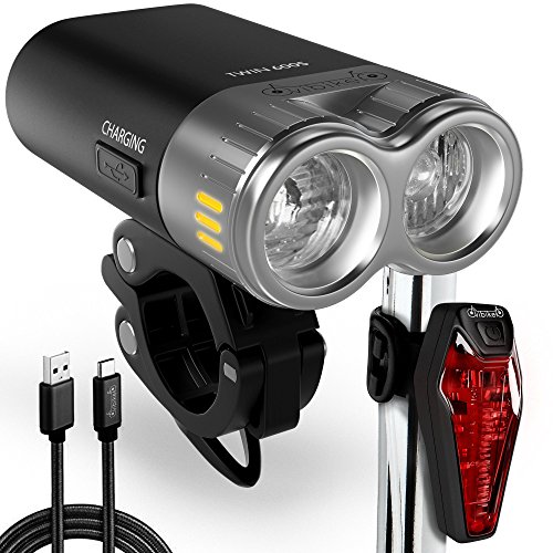 USB Rechargeable Bike Light Kit – LED Bicycle Headlight And Taillight Super Bright 600 Lumens – High Capacity Li ion Battery – Waterproof Fits All MTB Mountain And Road Bikes – Cycling Safety