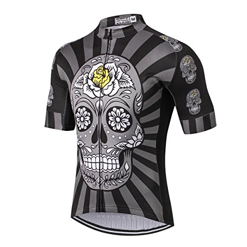 Weimostar Men’s Cycling Jersey Men 2018 Mountain Bike Jerseys Short Sleeve Tops Lycra Cuff (Black Skull Flower M)